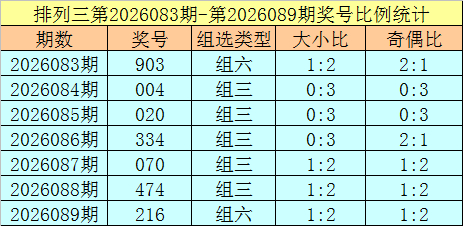 排列三第2026089期回顾:奖号216,奇偶比1:2,大小比1:2,和值9,类型:组六。